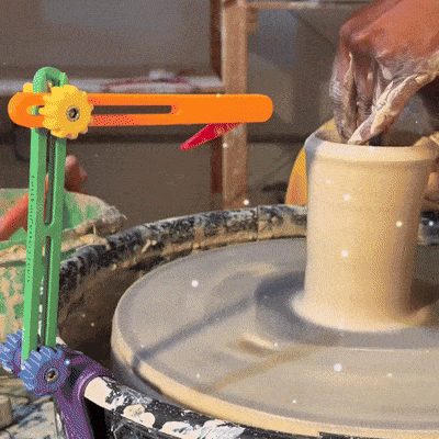 It's perfect on the clay boss wheel. It is compact and doesn't get in the way when I'm throwing. Super easy to clean up. The ergonomic knobs help me make fine adjustments.