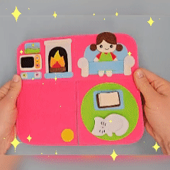 This is a unique project that can be transformed from a felt quiet book page into a THREE-DIMENSIONAL DOLLHOUSE ROOM!