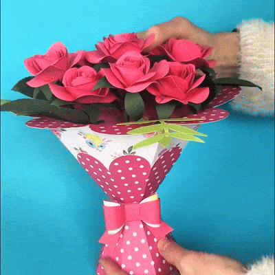 Create stunning cardstock flower bouquets with rolled roses, serving as both a beautiful decoration piece and a unique gift box.