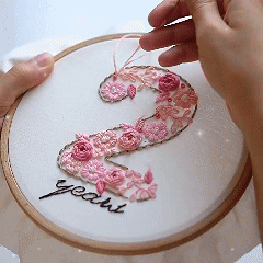2️⃣ Transfer & Stitch: Trace the pattern onto fabric and follow the guide to add pink floral magic.