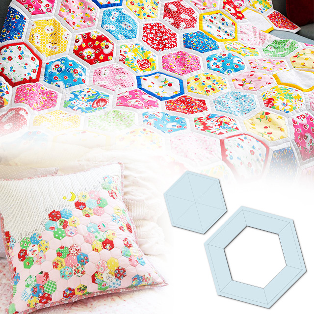This fantastic set of templates is the perfect tool to easily whip up gorgeous quilted hexagons!