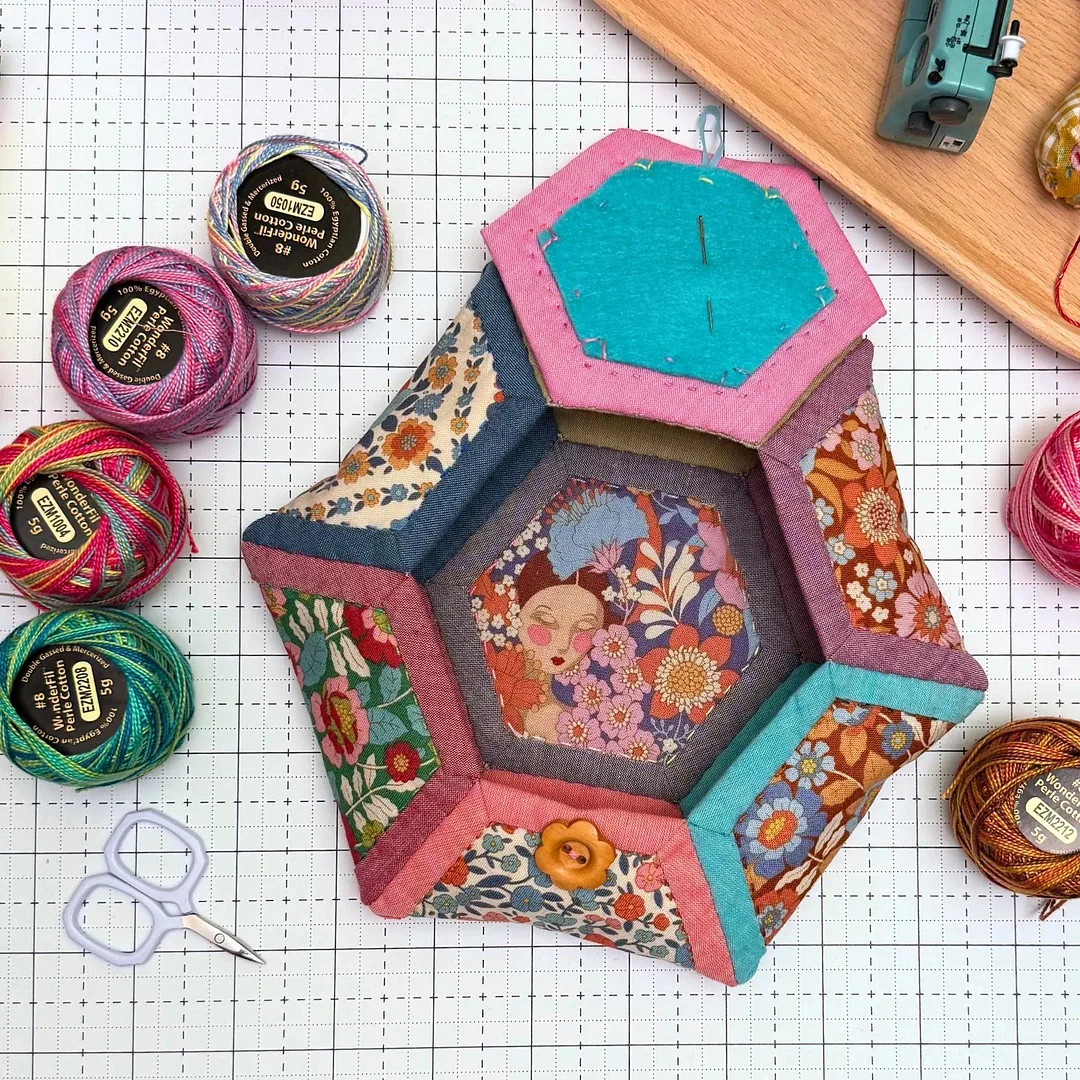 Cut, layer, quilt, bind – then sew the petals together and watch the box blossom into its own magic? Oh yes – with a felt needle guard and adorable button loops, it's as practical as it is fabulous.๐ผ