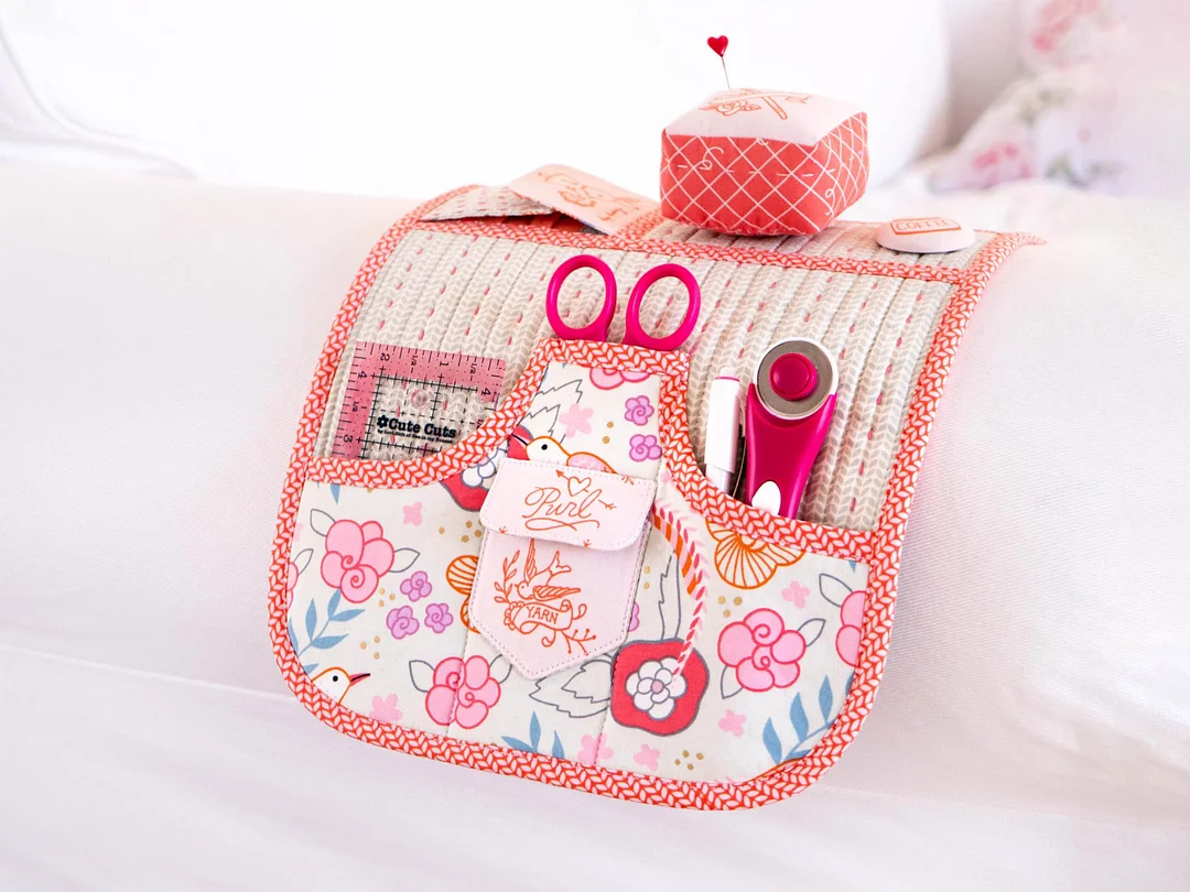 The base of the Smart Sofa Station features beautiful quilting, and it comes with an array of pockets. Whether you're a quilter, into English paper piecing, crocheting, embroidering, or any other craft, there's a pocket to suit your needs. You can neatly arrange your scissors, notions, and ongoing projects in these pockets, keeping everything in an orderly fashion and within easy reach.